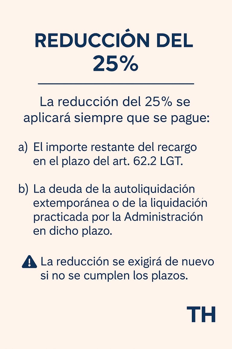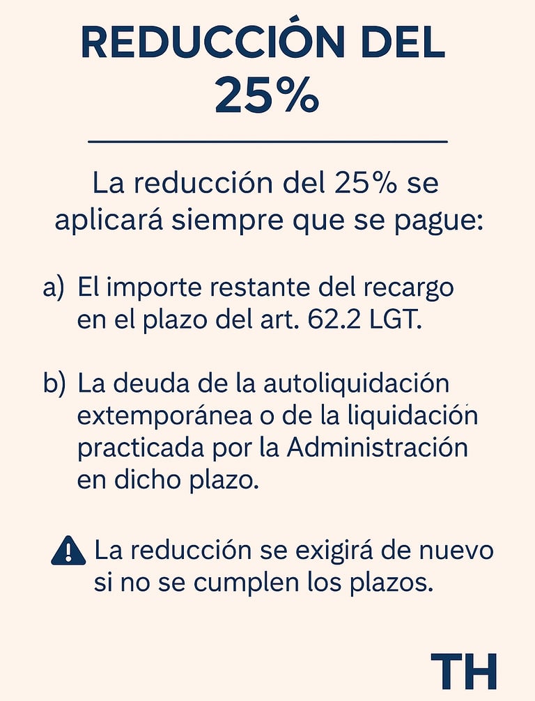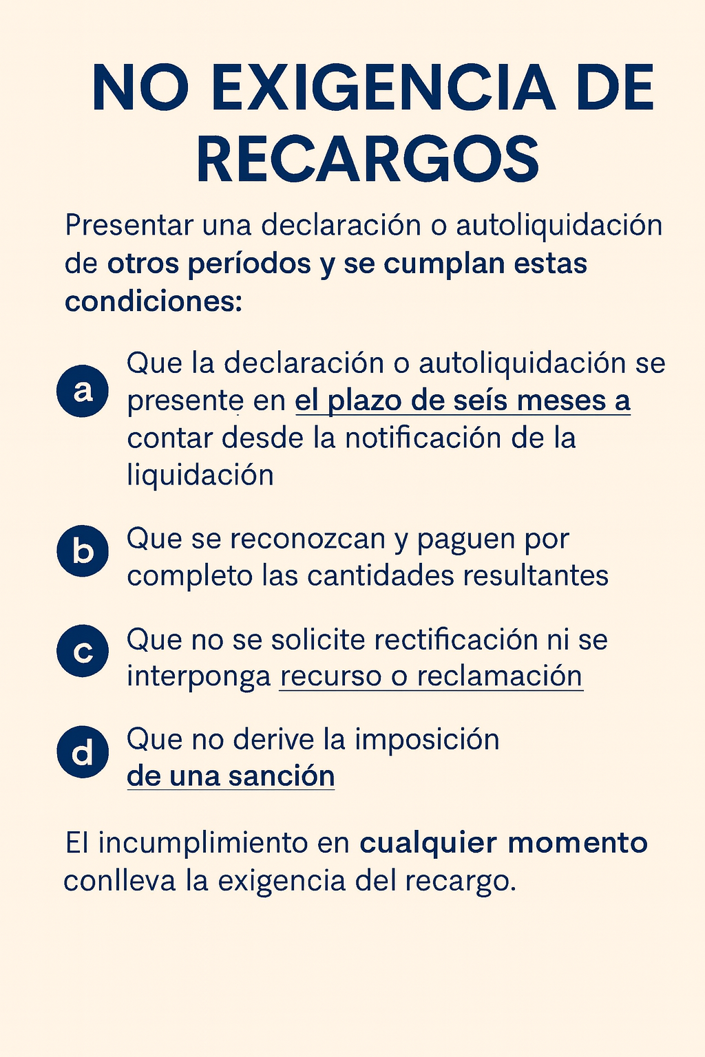 Ejemplo: si presentas 4 meses tarde → recargo del 5%.Si han pasado más de 12 meses